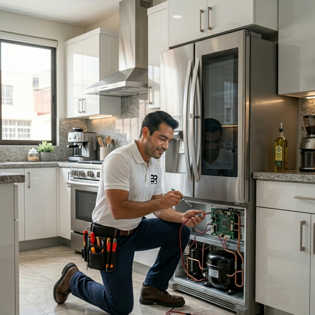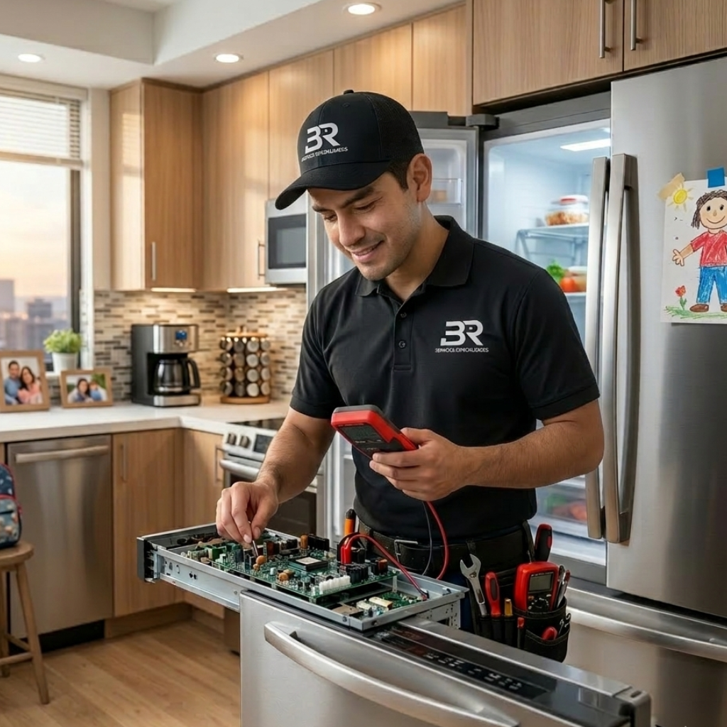 En BR Servicio Especializado ofrecemos un servicio profesional de reparación de refrigeradores para garantizar que tu equipo vuelva a funcionar correctamente. Sabemos lo importante que es este electrodoméstico en el hogar o en el negocio, ya que mantiene los alimentos frescos y en buen estado. Cuando un refrigerador presenta fallas, puede generar pérdidas de alimentos y un mayor consumo de energía. Por eso nuestro equipo técnico se enfoca en detectar el problema de manera rápida y eficiente. Contamos con experiencia en la reparación de diferentes marcas y modelos. Nuestro objetivo es ofrecer soluciones confiables y duraderas. Así podrás volver a utilizar tu refrigerador con total tranquilidad.